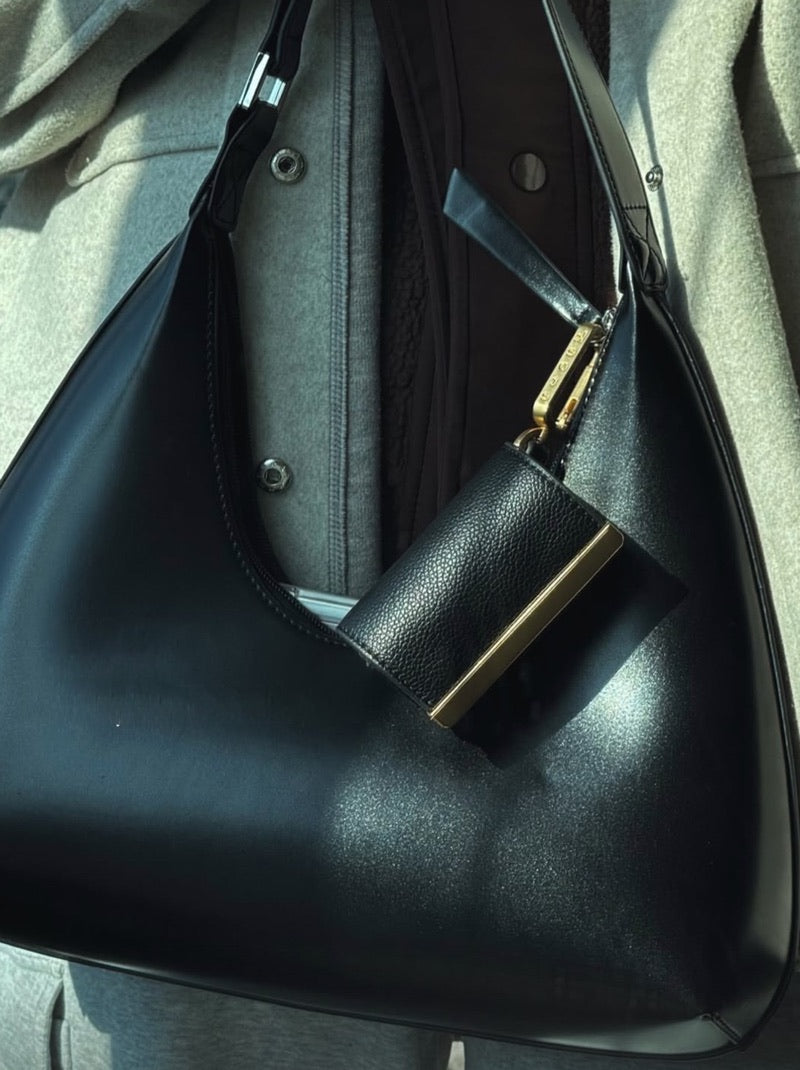 Not at all. When folded, it remains compact and sculptural, blending seamlessly into your bag without adding bulk or clutter.