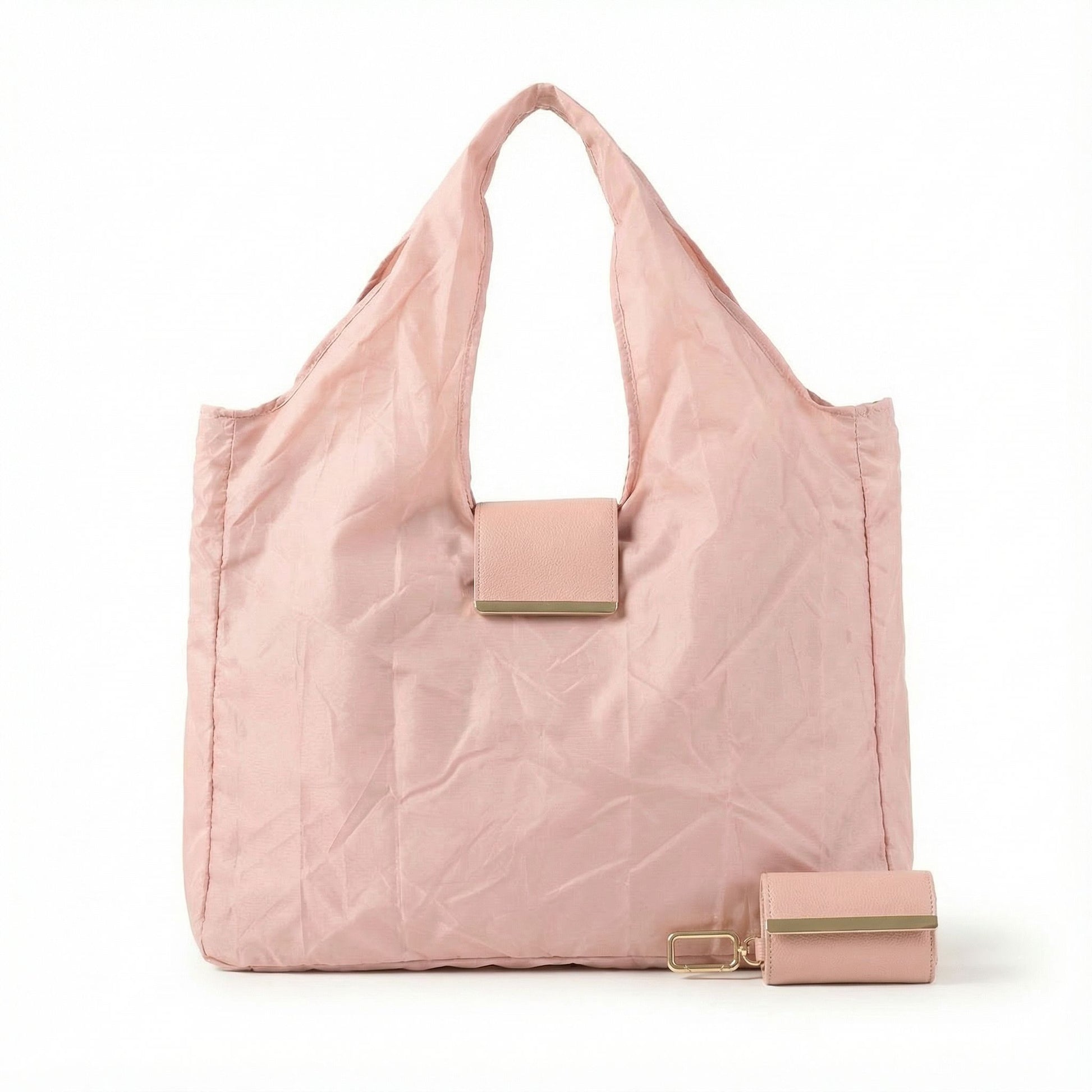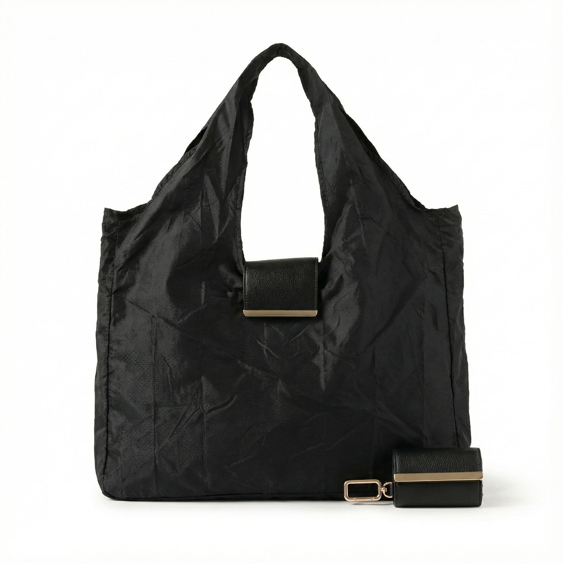 When opened, it expands into a full-size tote roomy enough to carry everyday essentials, groceries, travel items, and more, while still feeling lightweight and comfortable to carry.